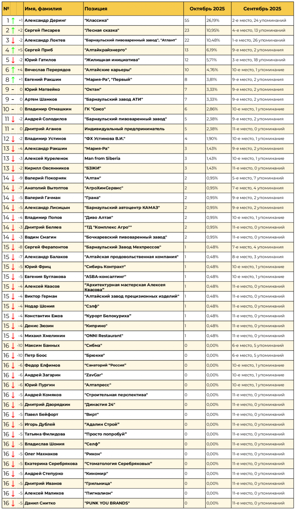 Александр Локтев, "Барнаульский пивоваренный завод" - 3 место (22 упоминания, -4 к сентябрю);