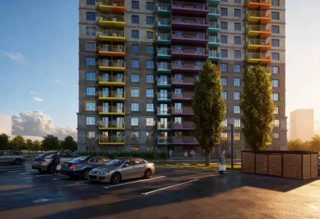 Фасады склада будут выполнены частично из металлических витражей и композитных материалов, а частично из сэндвич-панелей. Также на участке будет благоустроена парковка на 54 места.